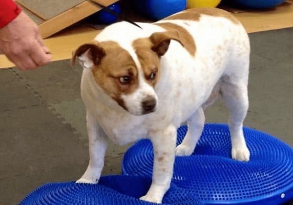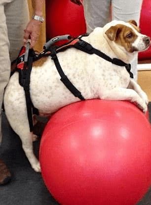 为了让狗狗恢复健康,救助站联系了兽医,为它定制了专门的减肥计划,狗狗必须每天通过节食和运动来减掉自己的体重。利用健身球和跑步机,狗狗在一个月的时间内竟然减掉了四十四磅的重量,这相当于它原来体重的一半。